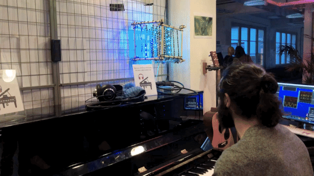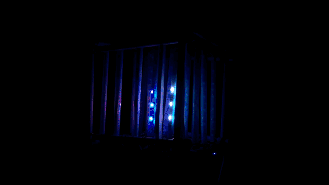 Control of the pixel cube was achieved via a PC running the TouchDesigner software. The TouchDesigner project mapped a 3D animation to the neopixel strip, using the pixels to visualise 3D shapes. An audio input mapped to size, position and colour of the 3D animation provides interactivity when hooked up to a digital instrument.